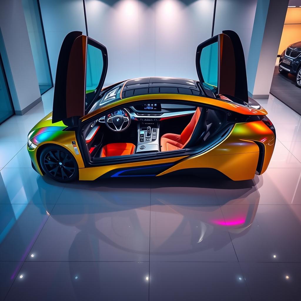 Unleash the Future: 2026 BMW i8 M Prompt:Bmw i8 m 2026 exterior in car showroom and interior pictures COPY PROMPT